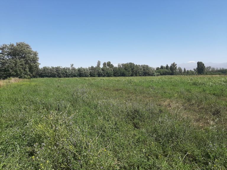 El último cultivo fue de orégano y alfalfa en su totalidad, cuenta con Derecho de Riego definitivo en la totalidad de su superficie.